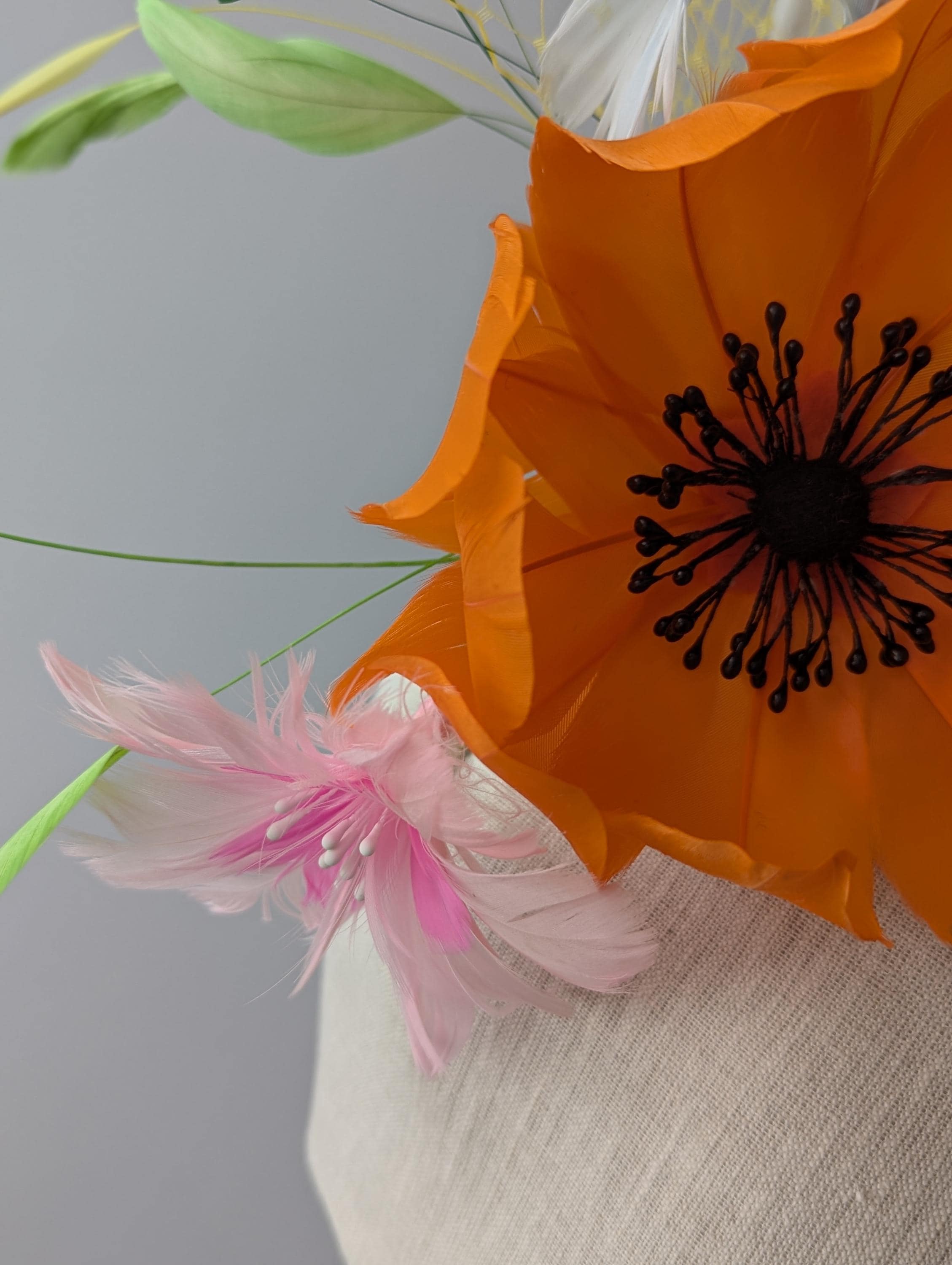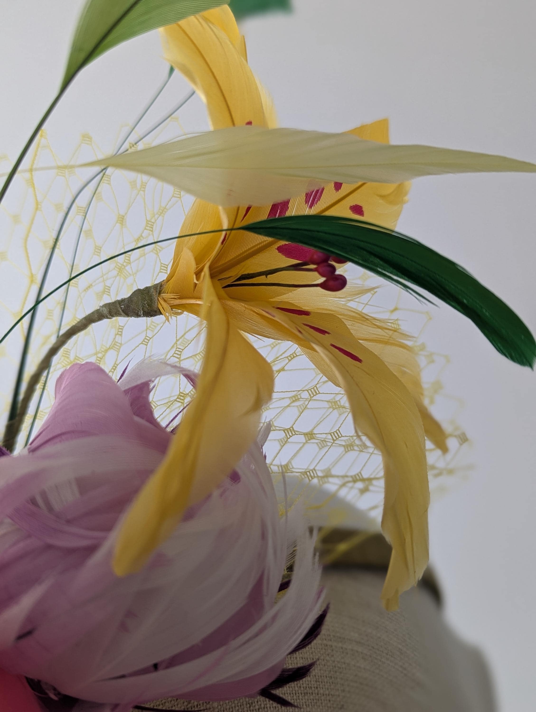 Store your millinery away from sunlight in the box it came in or in a sealed box or container with tissue paper for cushioning.