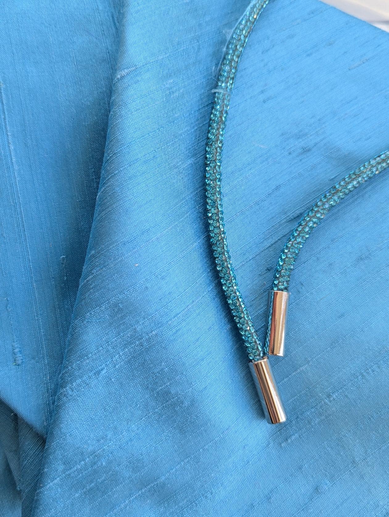 It measures 6" across and has silk lining. Its held on with a headband covered in the same silk with velvet inside for extra comfort and grip. Let me know if you would prefer at hat elastic and I will change it over for you.